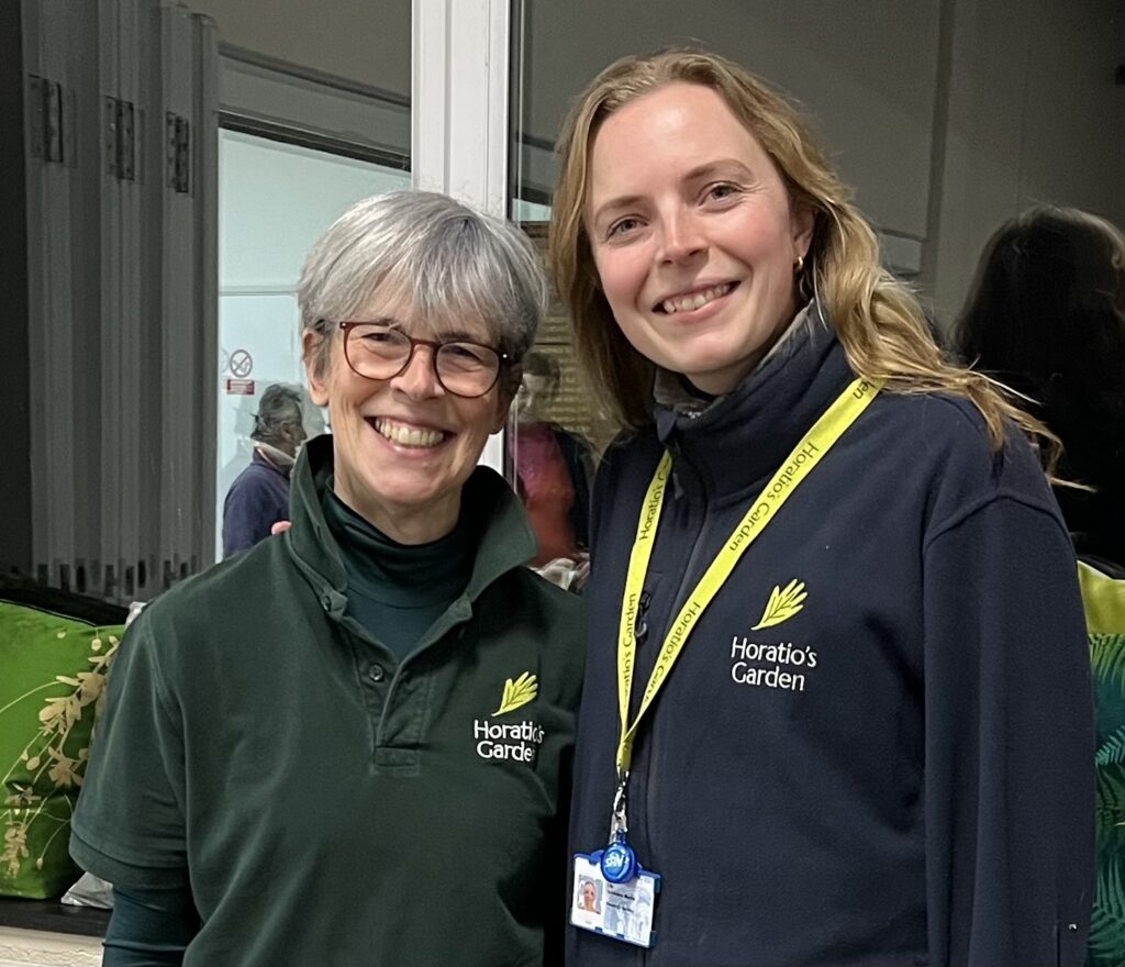 One of the 35 volunteers at Horatio’s Garden at Stanmore, Liz, spoke about how she got interested in volunteering at the garden at Stanmore; gardening and helping with activities.  Patients talk about the peace and quiet and sanctuary the garden gives them, as well as providing a lovely space for families to visit. Because the units are sparsely spread around the country, 84 miles is the average distance travelled by visitors to the spinal units. Research into the impact of the gardens has found that for 71% of patients, the garden provides a distraction from pain.